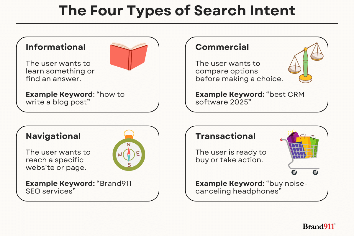 Search intent is the reason behind a user’s Google search. It shows what the user wants to learn, find, compare, or buy.